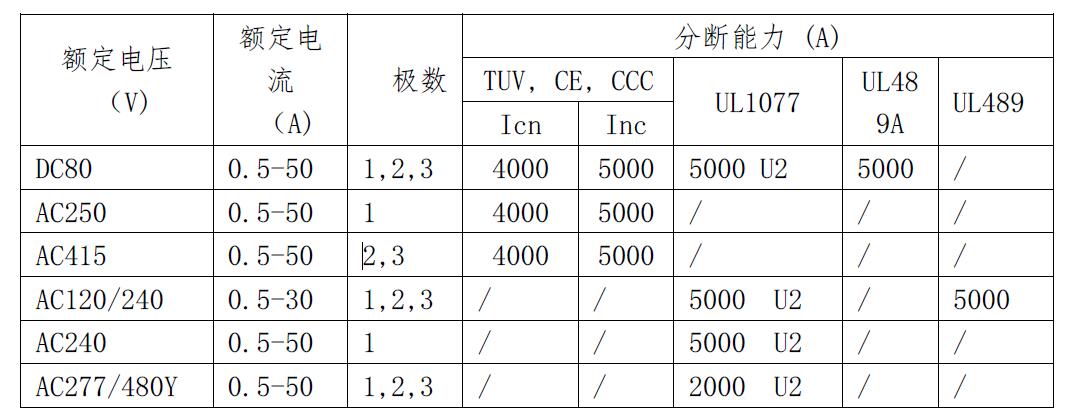 2.1符合标准:EN60934、GB17701、UL489A、UL1077、UL489
