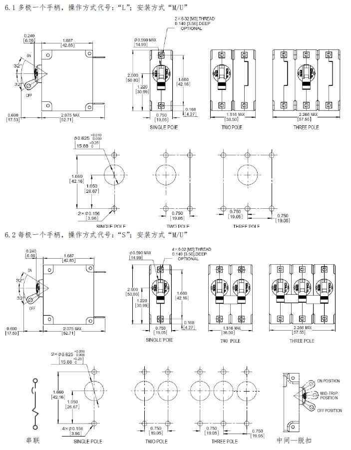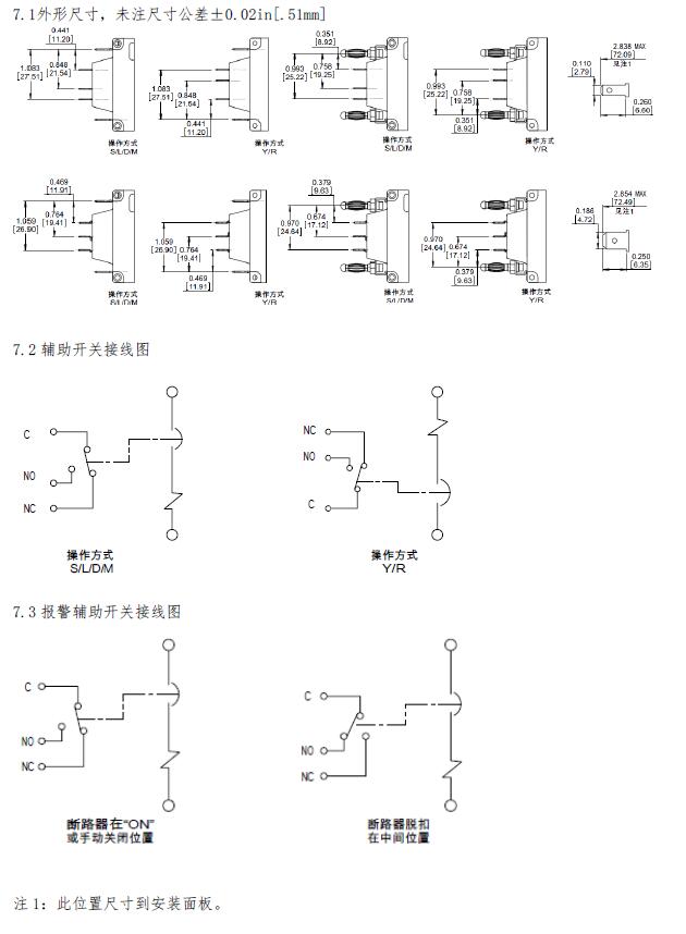 6.外形尺寸及安装尺寸(未注外形尺寸公差:±0.02in[.51mm];未注安装尺寸公差:±0.005in[.13mm] )