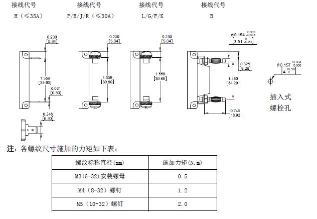 10 .6 产品上安装螺母规格为M3×5或 6-32UNC,安装时的扭紧力矩为0.5N.m。