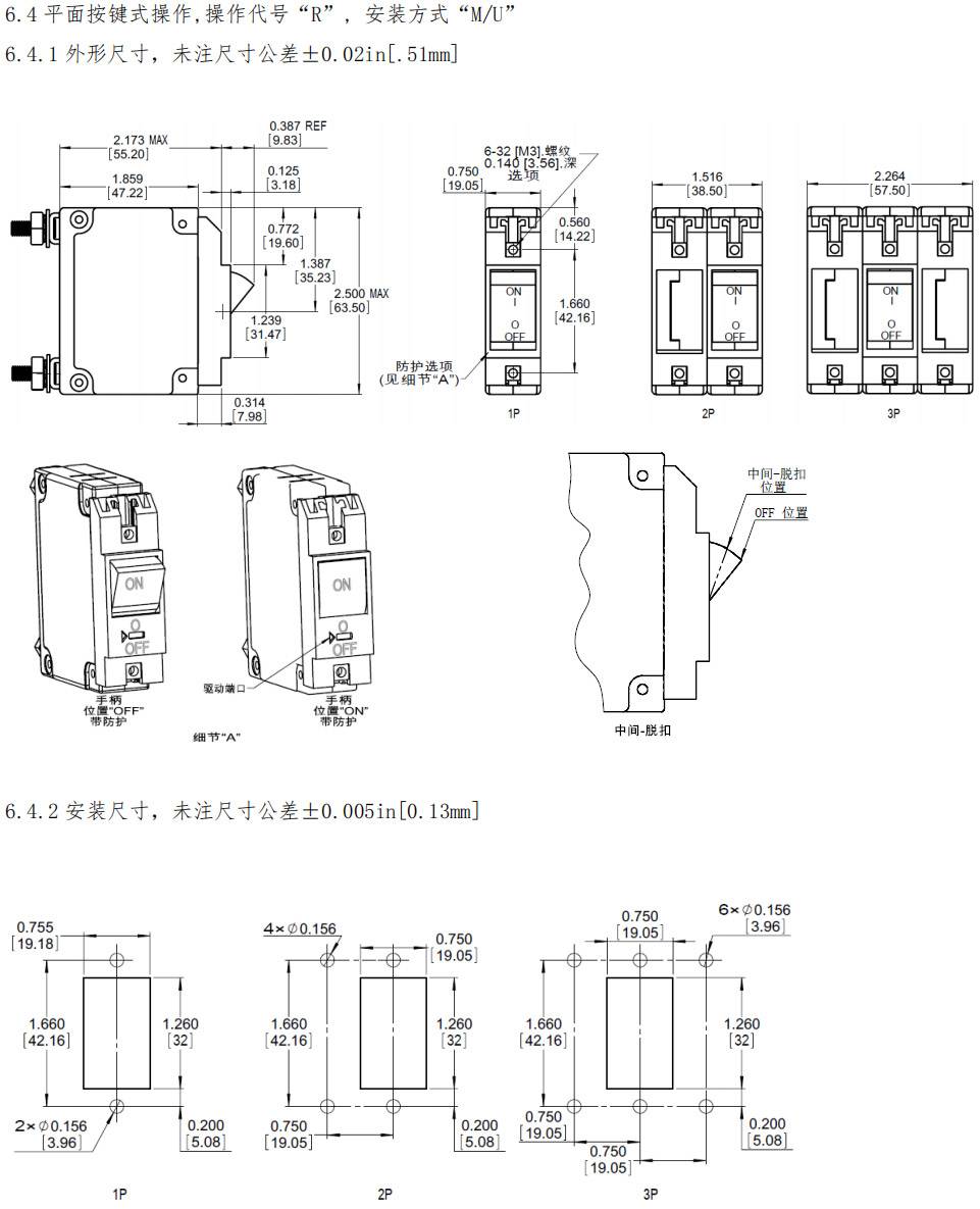 6.6.1 外形尺寸,未注尺寸公差±0.02in[.51mm]