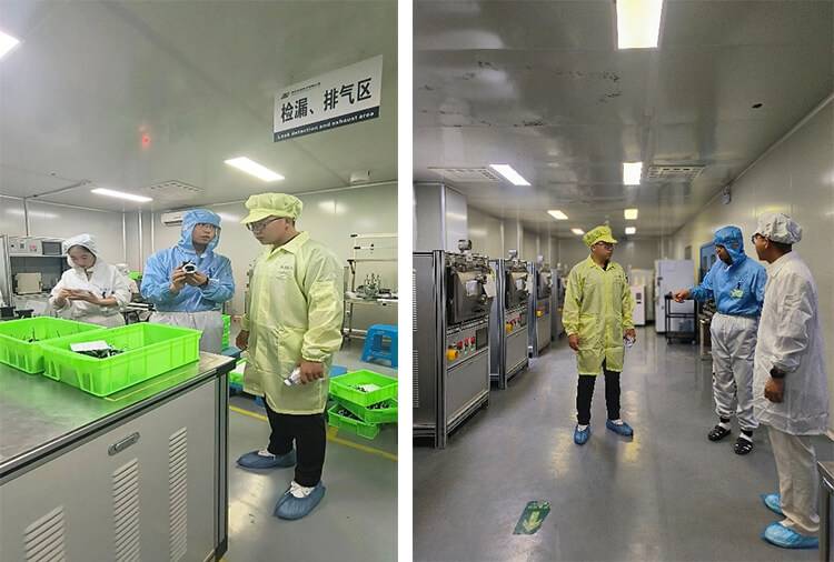会谈结束后制造四部(高压直流)科长黄宁带领杜老师参观了企业生产车间,先后参观了生产线、设备维护区、原材料储存区等生产车间的关键部分。部门负责人详细地介绍了各个环节的生产流程、技术要求以及质量控制措施。随后公司实验/体系科科长赖斌带领杜老师参观了公司的实验室,先后参观了实验室的各个区域,包括实验准备区、实验操作区、数据分析区等。部门负责人详细地介绍了实验室的功能、设备配置以及实验流程,杜老师身着特定的防护服进入工作区域实地感受了工作环境。