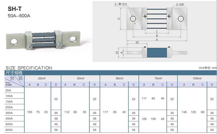 ◆主要技术参数: 1)生产范围: 1A~50A 10mV~800mV; 51A~2500A 10mV~300mV; 2501A~12000A 10mV~100mV 2).环境条件:-25~+40℃,相对湿度:≤80%。 3).温升:额定电流下持续2小时温升变化趋于稳定后,额定电流100A以下不超过80K;额定电流100A以上温升不超过120K。 4).过负载性能:120%额定电流值,2小时。 5) .热电势影响:不超过等级指数的50%。