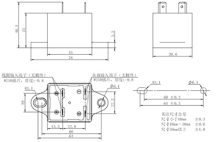 6、为防止出现松动,接触器安装时请正确使用垫圈。接触器安装处请使用M5螺钉,螺钉锁紧扭 矩请控制在3N.m~4N.m;继电器引出脚允许的插拔力为(1)负载引出脚:49N;(2)线圈引出脚: 49N。在超过范围的情况下,可能会造成破损。