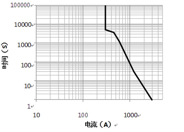 注:以上数据在环境温度为 85℃,导线截面积≥120mm²条件下测得。数据仅作参考,请勿直接 用于选择熔断器