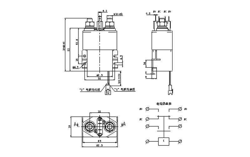 注:1. 产品线圈采取正、负脉冲激励,激励时间500ms≤t≤1s。线圈不能持续长期通电,操作频率不得超过每分钟6次,并且脉冲应是方波。正脉冲(“+”接电源正,“-”接电源负)使触点闭合,负脉冲(“+”接电源负,“-”接电源正)使触点断开。线圈去激励后,接触器触点状态由产品内的永磁性磁钢保持。