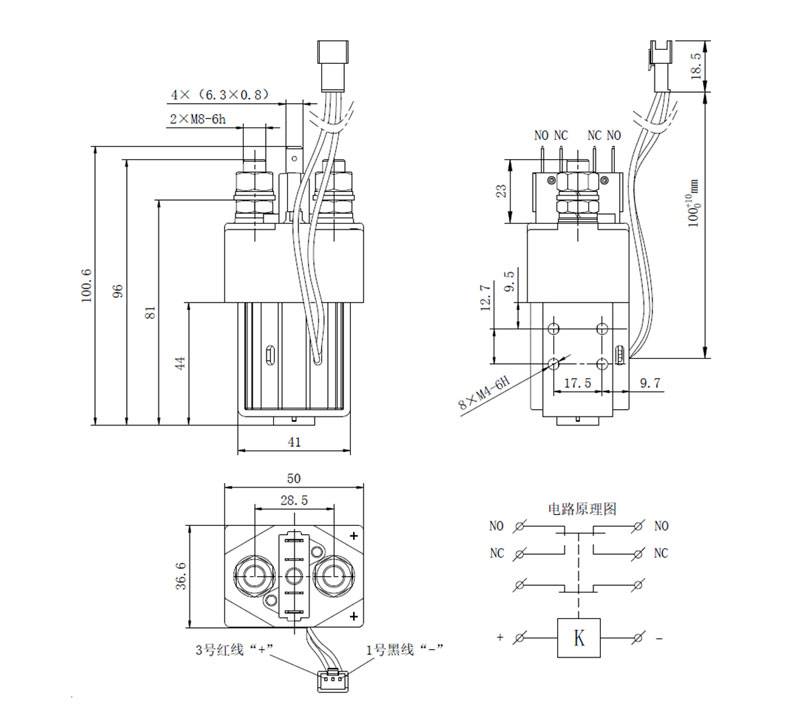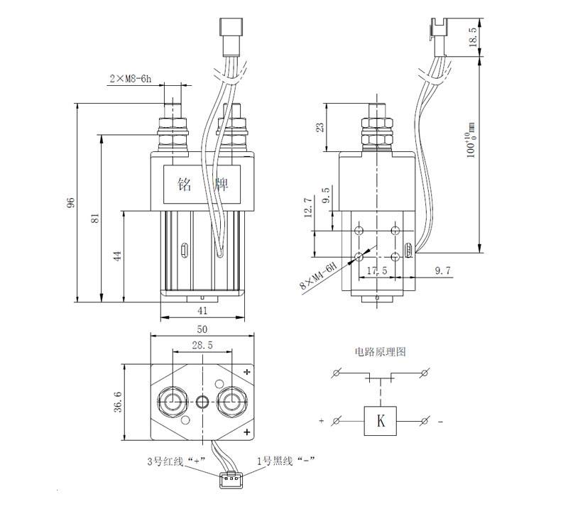 注:1. 产品线圈采取正、负脉冲激励,激励时间500ms≤t≤1s。线圈不能持续长期通电,操作频率不得超过每分钟6次,并且脉冲应是方波。正脉冲(“+”接电源正,“-”接电源负)使触点闭合,负脉冲(“+”接电源负,“-”接电源正)使触点断开。线圈去激励后,接触器触点状态由产品内的永磁性磁钢保持。